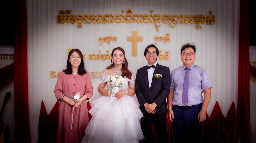 우리교회 청년으로 있는 란니 자매와 이삭 형제가 결혼을 합니다. 2년 정도 알고 지내오면서 사랑을 확인하고 결혼을 하게 되었습니다. 하나님 앞에서 결혼의 서약을 하고 싶어하는 두 사람에게 기독교 예식으로 교회에서 결혼식을 진행했습니다. 김치영 선교사는 캄보디아에서 처음으로 결혼 주례를 했습니다. 하나님의 은혜로 주례를 떨림없이 잘 한 것 같습니다. 결혼의 기쁨이 가득 넘치길